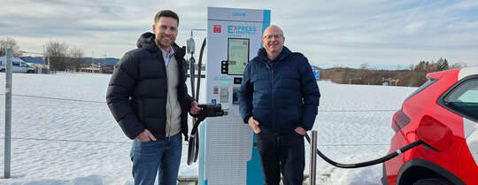 Kempten, im Januar 2026. Im Sulzberger Ortsteil See hat das Energieunternehmen Präg einen neuen Ladepark eröffnet. Der Standort am beliebten Badesee verfügt über vier Ladesäulen. Drei DC-Schnelllader mit bis zu 320 Kilowatt und ein AC-Ladepunkt mit bis zu 22 Kilowatt bieten künftig insgesamt acht Ladepunkte direkt am Öschlesee und unmittelbar an einer Zufahrt zur B 12 bzw. zum Autobahnzubringer A 980 in Richtung A 7.